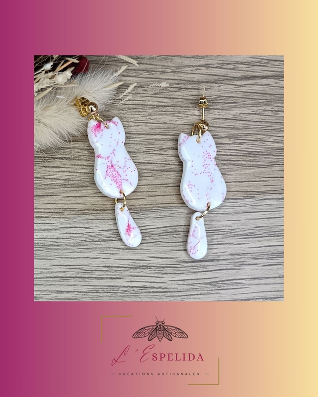 Chatons blancs à paillettes roses