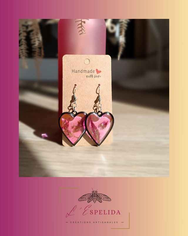Boucles d'oreilles en résine époxy et fleurs séchées