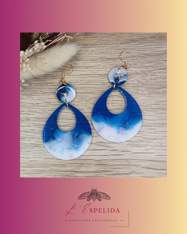 Créoles dorées fleurs blanches nacrées et perles dorées