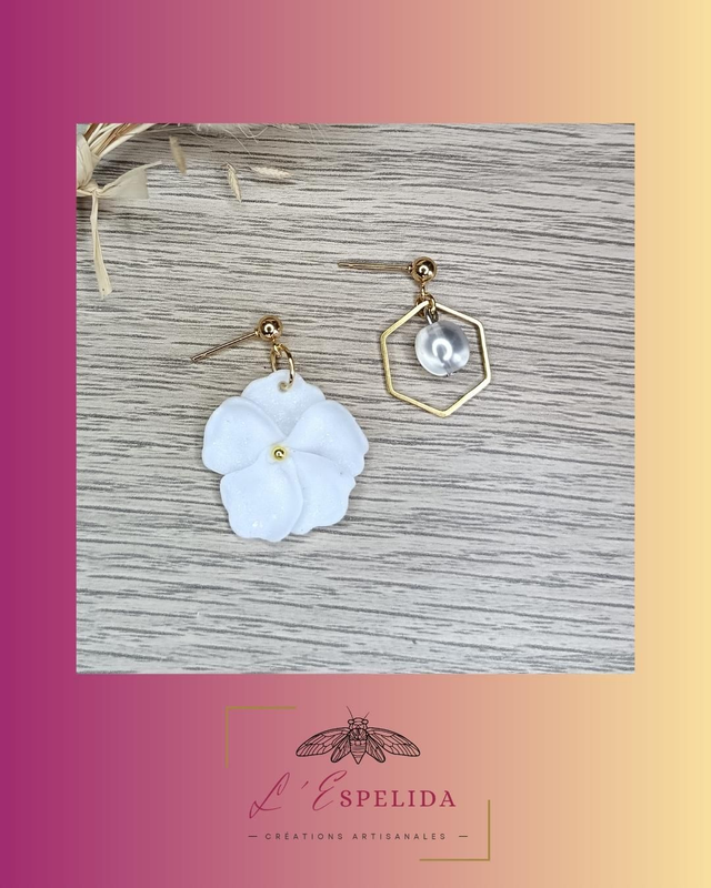 Les âmes soeurs - fleur et perle blanches nacrées et dorées