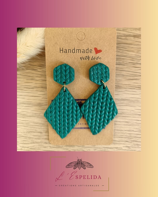 Pendentif coeur noir et vert avec gravure feuillage doré