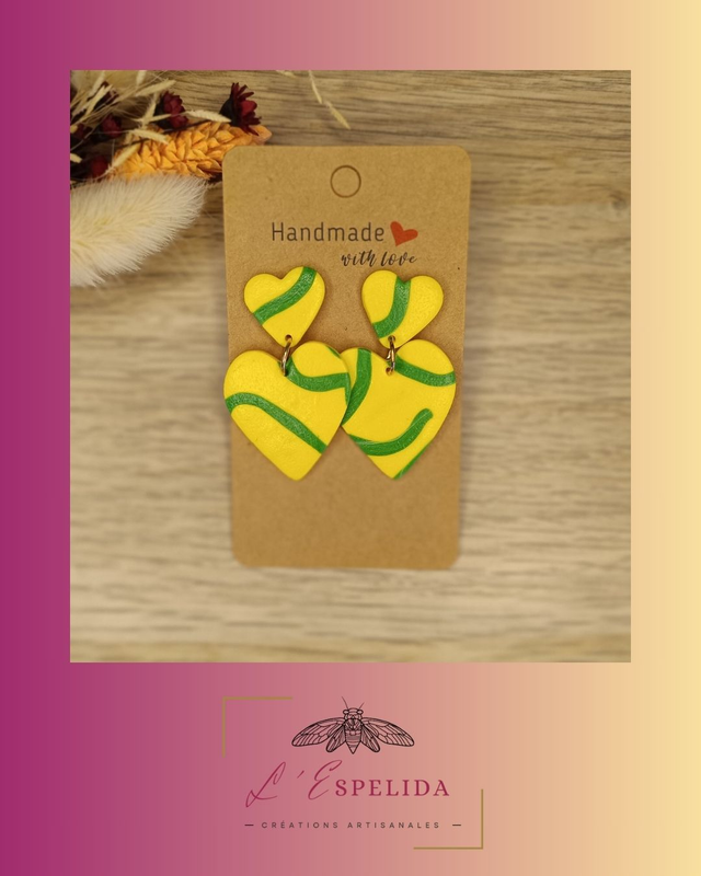Maxi coeur serpentins jaune et vert