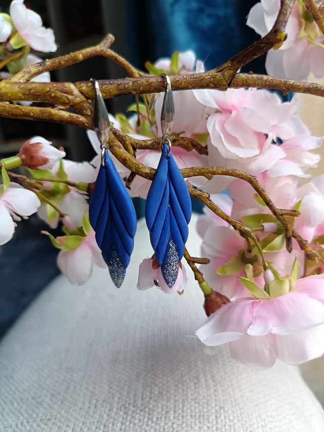 Gros anneaux en résine bleue et rose avec feuilles d'or