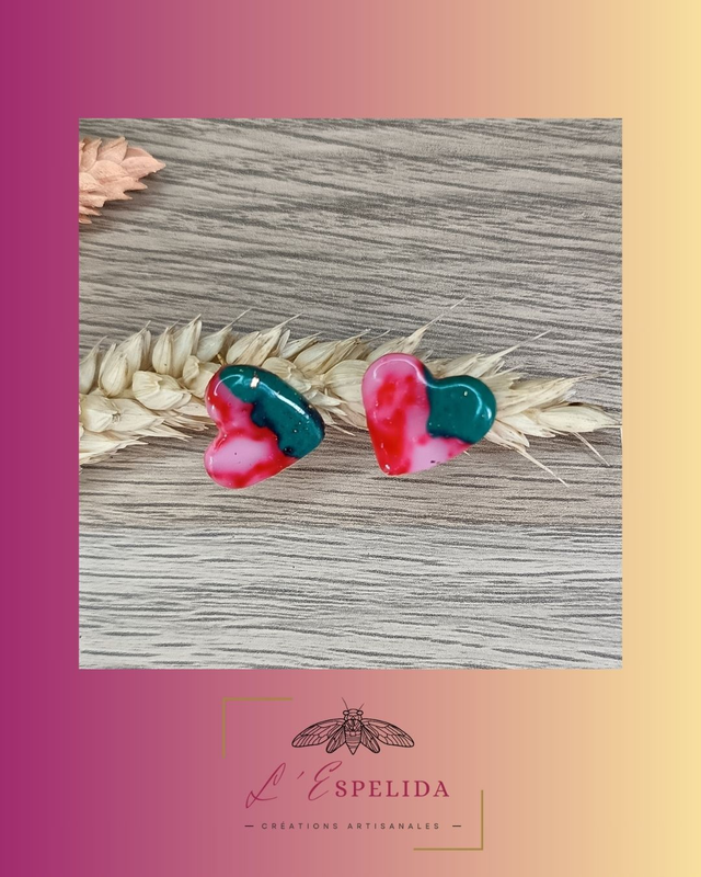 Sweeties coeurs marbrés rouges, verts, translucides et feuilles d'or