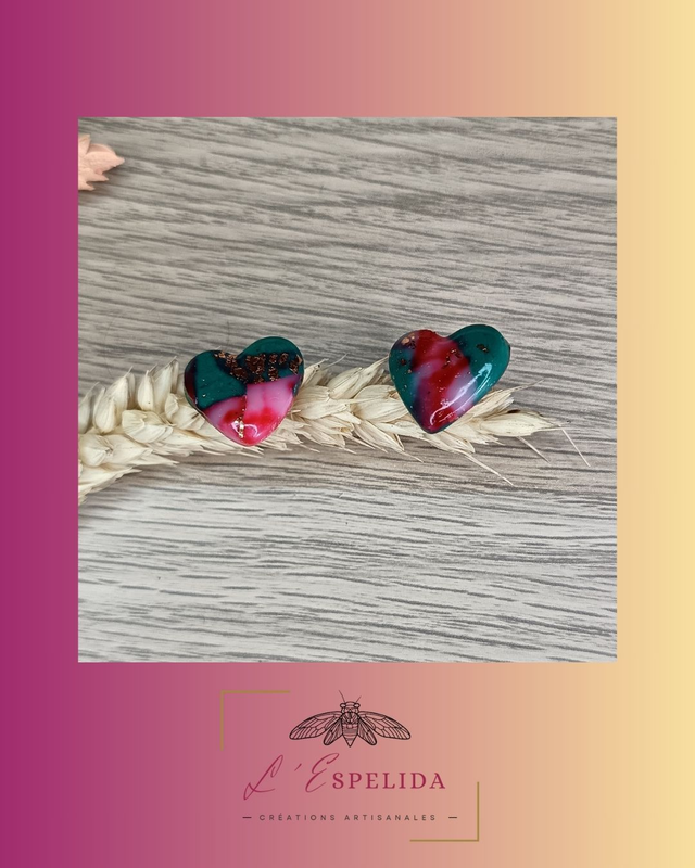 Sweeties coeurs marbrés verts, rouges et feuilles d'or